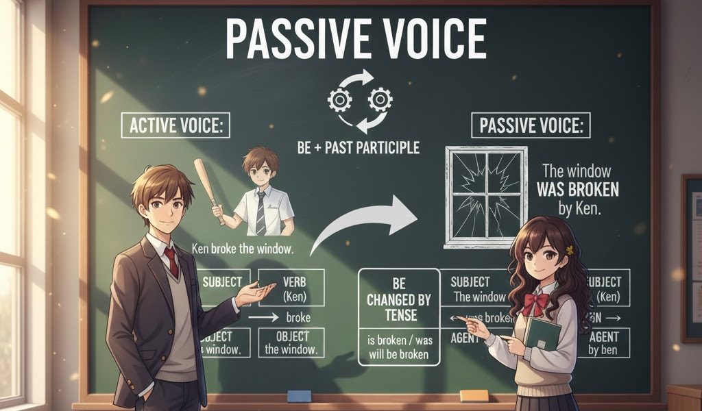 受動態をマスターすると、**「誰がしたか」よりも「何が起こったか」**に焦点を当てた、より客観的な表現ができるようになります。この基本と、be動詞 + 過去分詞 の構造をしっかり学びましょう!