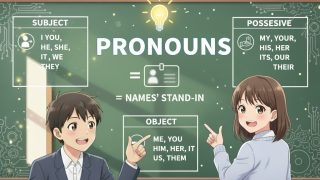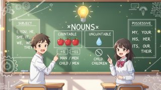 こんにちは、Thumb up Cafe Blogへようこそ!前回までは、文の主役となる「動詞(be動詞、一般動詞)」や、主語をワープさせる「人称代名詞」について学びました。今回注目するのは、物や人の名前を表す**「名詞(めいし)」**です。...