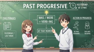 こんにちは、Thumb up Cafe Blogへようこそ!前回は、過去形(例: I played soccer.)を学び、**「過去に終わった事実」**を伝えることができるようになりましたね。今回学ぶ**「過去進行形(かこしんこうけい)」...