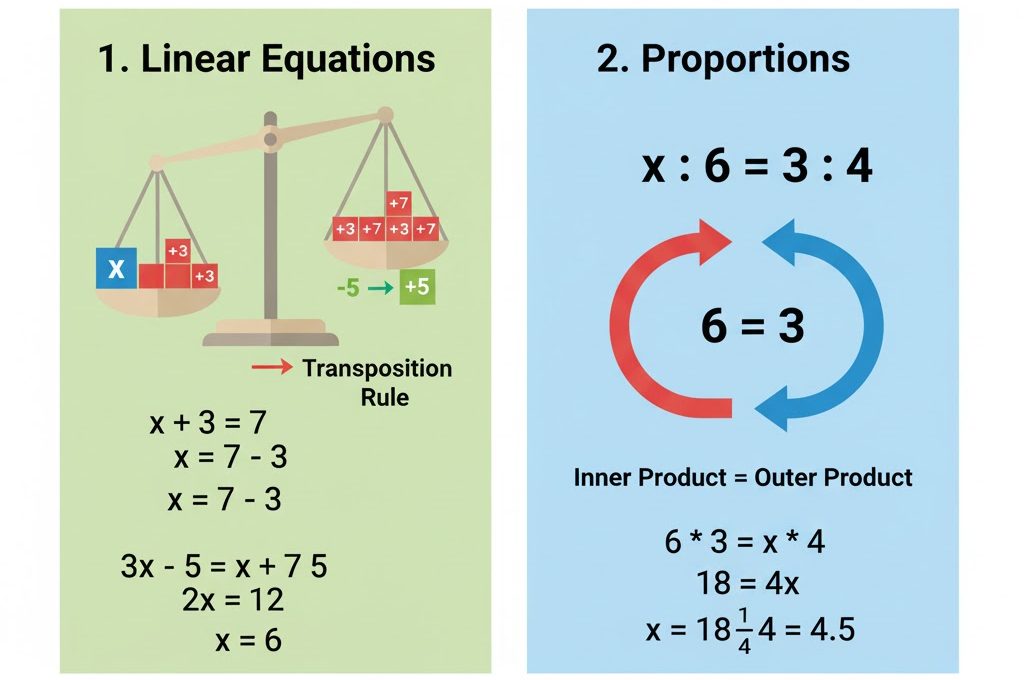 今日のカフェでは、方程式を解くための 2 つの強力なルール、「移項(いこう)のルール」と「比例式のルール」を、バランスゲームのように簡単に解説します!
