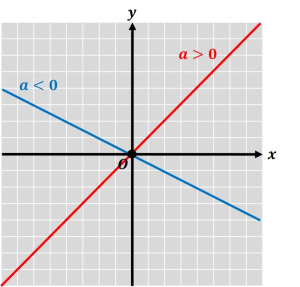 - 右上がり: a(比例定数)がプラスのとき( x が増えると y も増える)