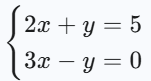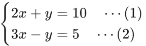 | 3. 足し算で y を消す | 符号が違うので、(1)式と(2)式を足す。 | (2x + y) + (3x – y) = 10 + 5 |