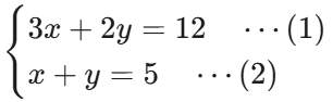 (1) – (2)’ → (3x + 2y) – (2x + 2y) = 12 – 10