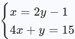 | 4. xの値を求める | yが消えて 5x = 15 となる。 | 5x = 15 → x = 3 |