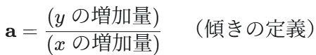 グラフで考えると、この傾き a が、**直線の坂道の急さ(角度)**を決めています。
