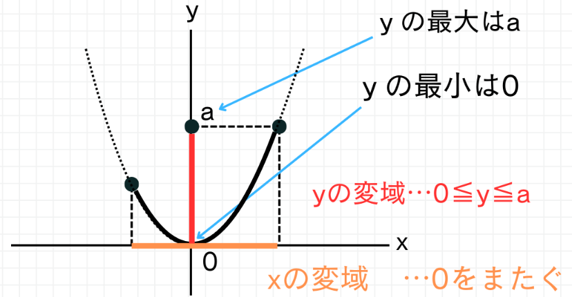 変域とは、**x の範囲(定義域)と、それに対応して y がとる値の範囲(値域)**のことです。一次関数の変域は、両端の値を代入すれば求まりましたが、二次関数ではそうとは限りません。