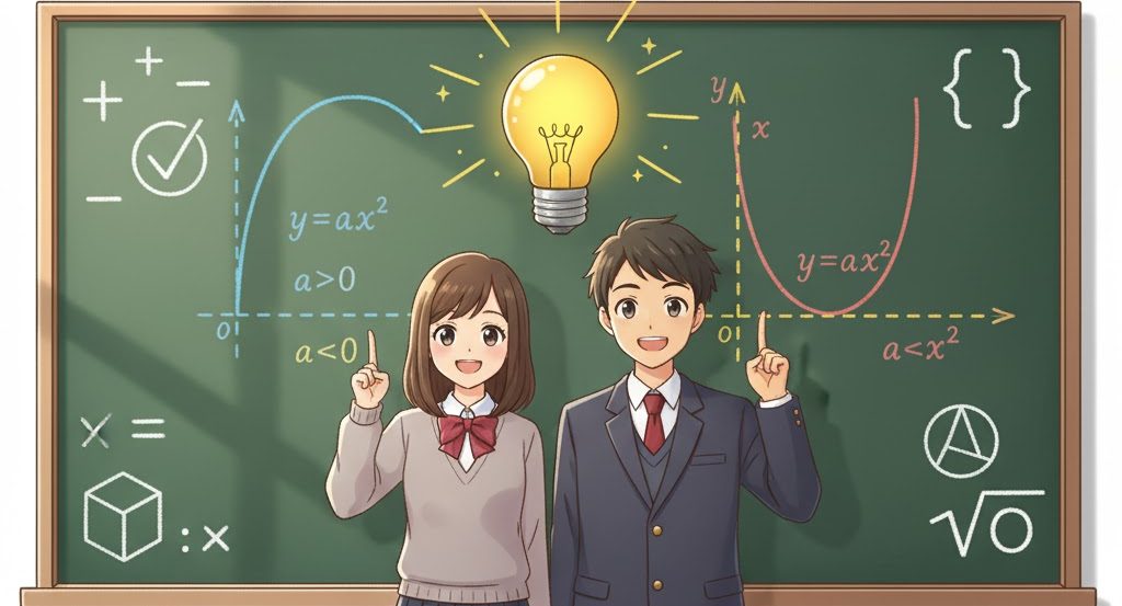 中学3年生の数学で、二次関数 y=ax²という新しいタイプの関数に出会います。一次関数のグラフがまっすぐな直線だったのに対し、二次関数のグラフは美しい曲線を描きます。