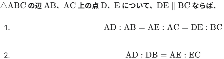 🔑 定理 1-A:辺の比は平行線で分けられる