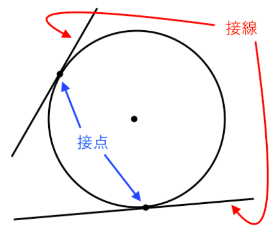 - 接点: 円と接線が接している、そのただ一つの点。