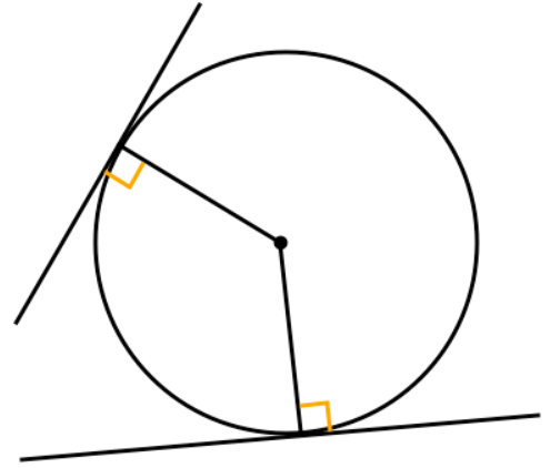 円の接線は、接点を通る半径と、必ず垂直に交わる。
