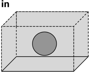 | 場所 | 箱や部屋などの内部、広い地域 | in the box (箱の中に), in Tokyo (東京に) |
